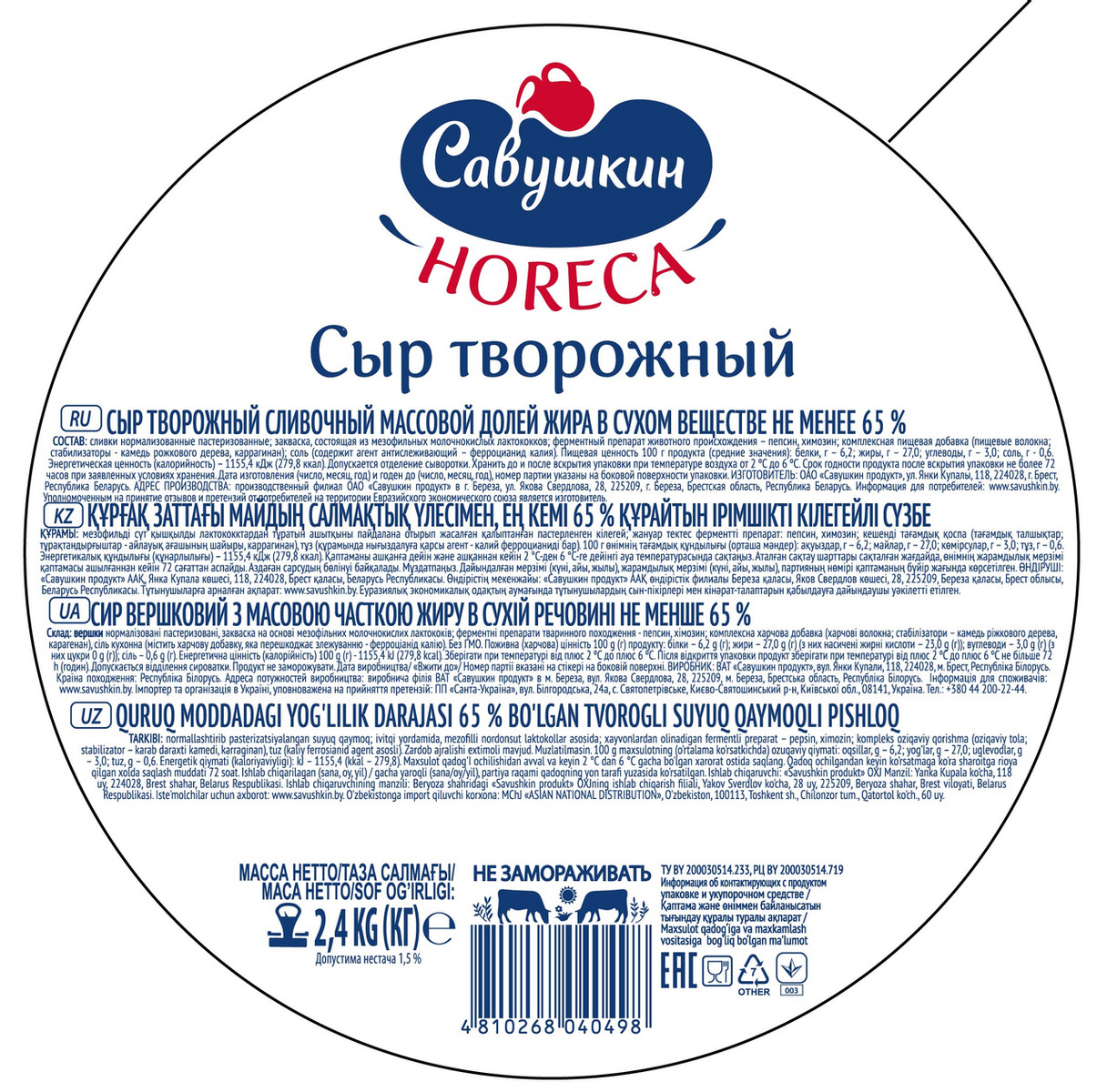 Со сливочным творожным сыром вы с легкостью приготовите вкусный завтрак для всей семьи. Ведь вам достаточно просто намазать его на хлеб и дополнить ломтиком свежих овощей и зеленью. А искушенные гурманы непременно оценят рулет с творожным сыром и лососем. Это универсальный продукт, который одинаково хорошо подходит и для закусок, и для десертов. Кроме того, творожный сыр станет отличной основой для нежного соуса к пасте. Большая упаковка, для большого праздника, хватит на всех!