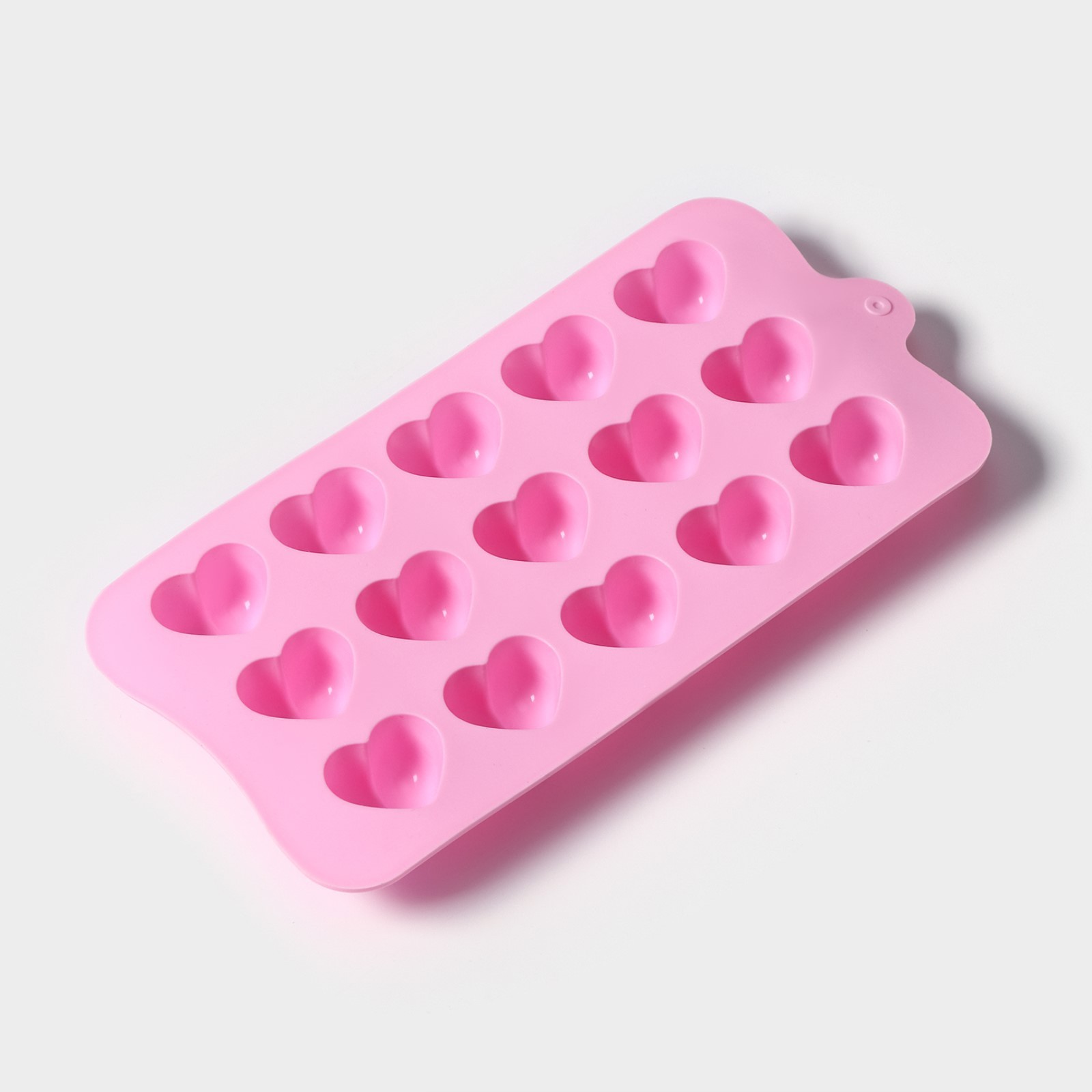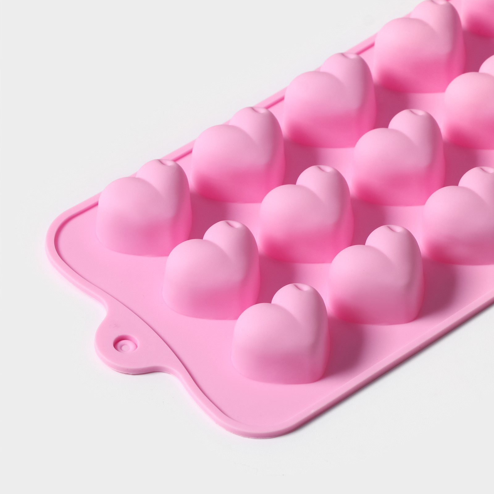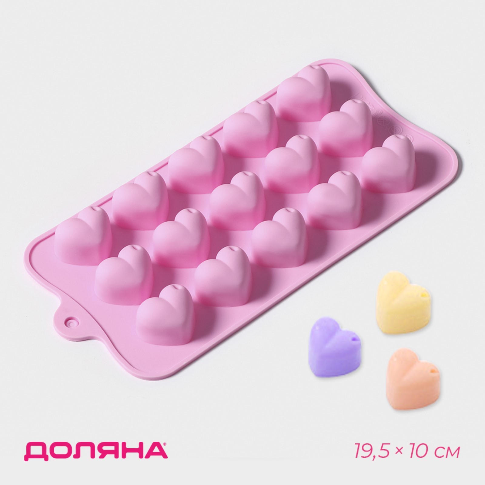 Форма для конфет и шоколада Доляна «Сердечки», силикон, 19.5×10×1.8 см, 15 ячеек (2.7×2.3 см), розовая