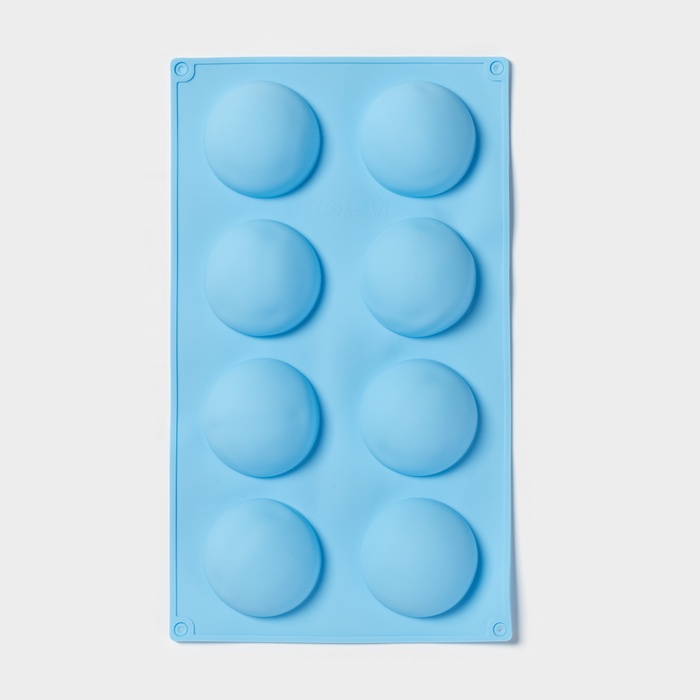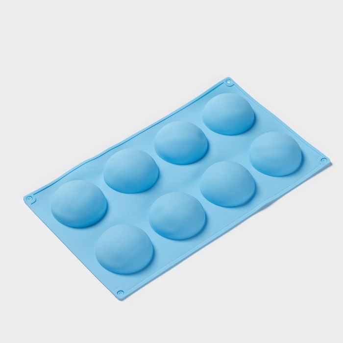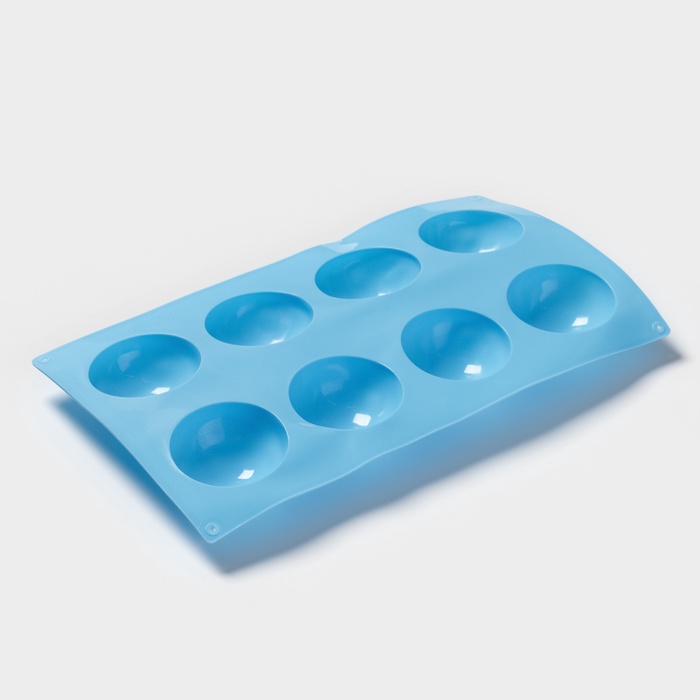 Форма силиконовая для выпечки Доляна «Полусфера», 28×16.5 см, 8 ячеек, d=5.5 см, голубая
