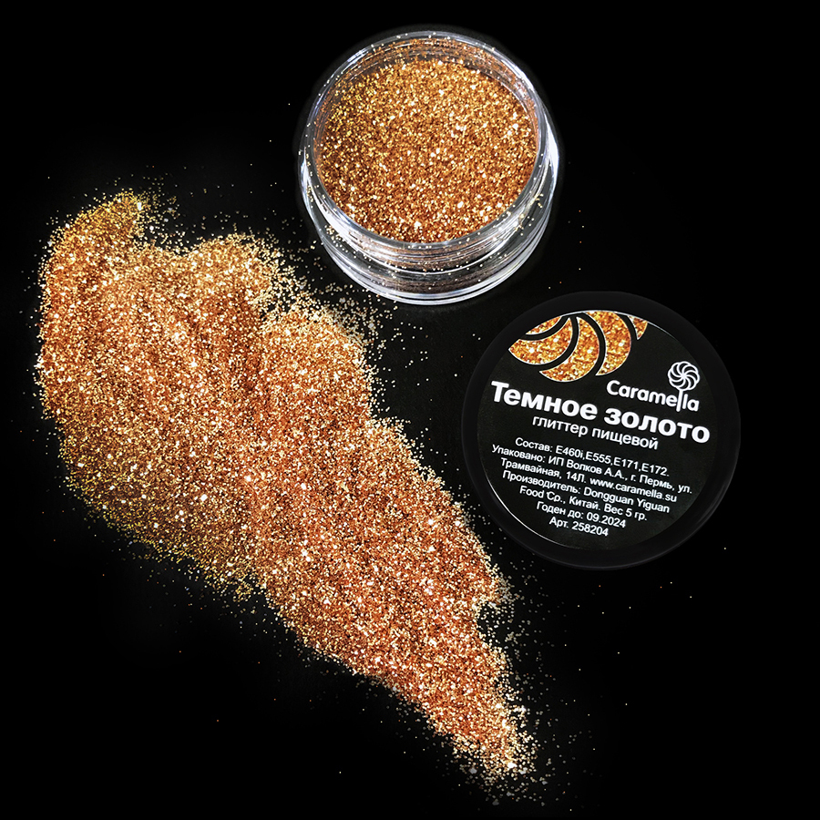 Глиттер съедобный пищевой Темное золото Caramella, 5 гр