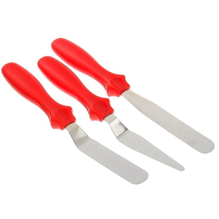 Набор небольших металлических лопаток для работы с кремом, гелем, начинками или шоколадом.