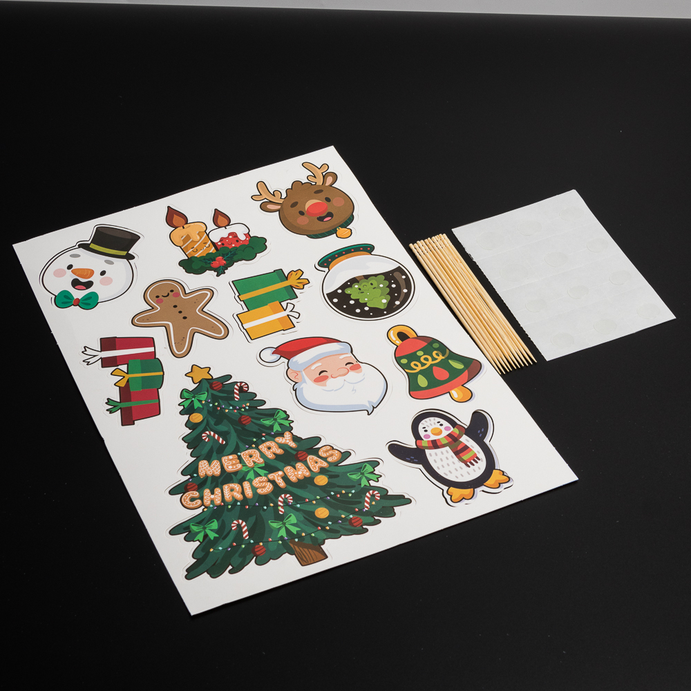 В комплекте лист с топперами (11шт), шпажки (10шт), клейкие подушечки (12шт)