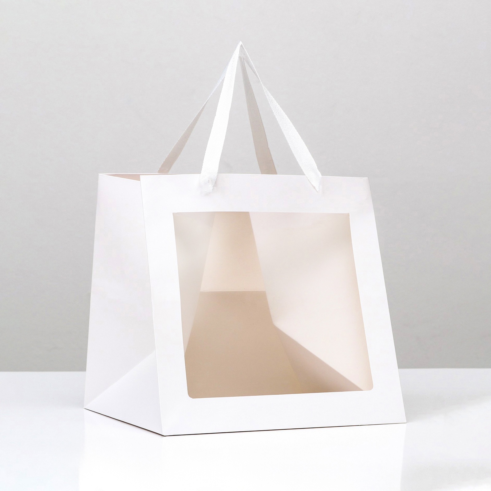 Пакет крафт с квадратным дном и окном 20 Х 20 Х 20 см Белый 9608103