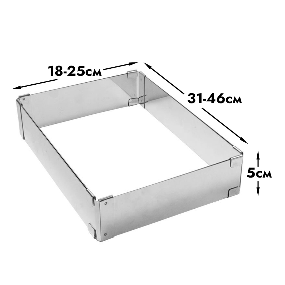 Раздвижной металлический прямоугольник для выпечки и сборки кондитерских изделий. Для профессионального использования.