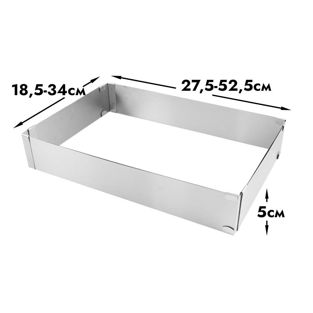 Раздвижной металлический прямоугольник для выпечки и сборки кондитерских изделий.