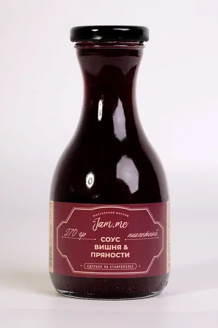 Состав: Вишня, сахар, вода, уксус, загуститель - пектин яблочный, имбирь, кардамон, корица, перец черный, регулятор кислотности - лимонная кислота, соль