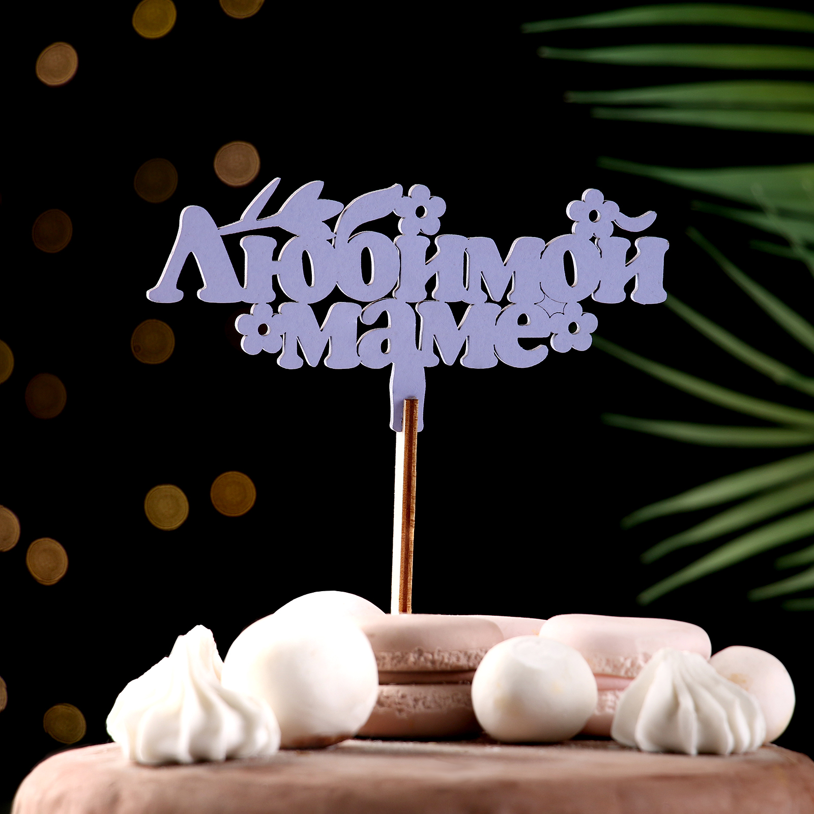 Топпер для торта деревянный «Любимой маме», сиреневый, 14×7 см