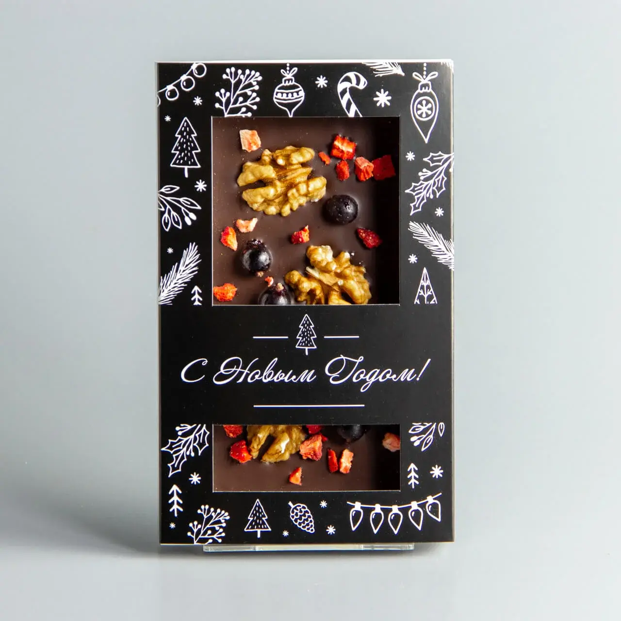 состав: какао тертое, сахар, масло какао, эмульгатор: соевый лецитин, ароматизатор: ванилин идентичный натуральному, эмульгатор Е476, орех пекан, вишня и арахис. Может содержать молочные продукты.